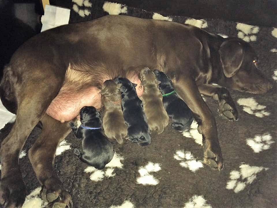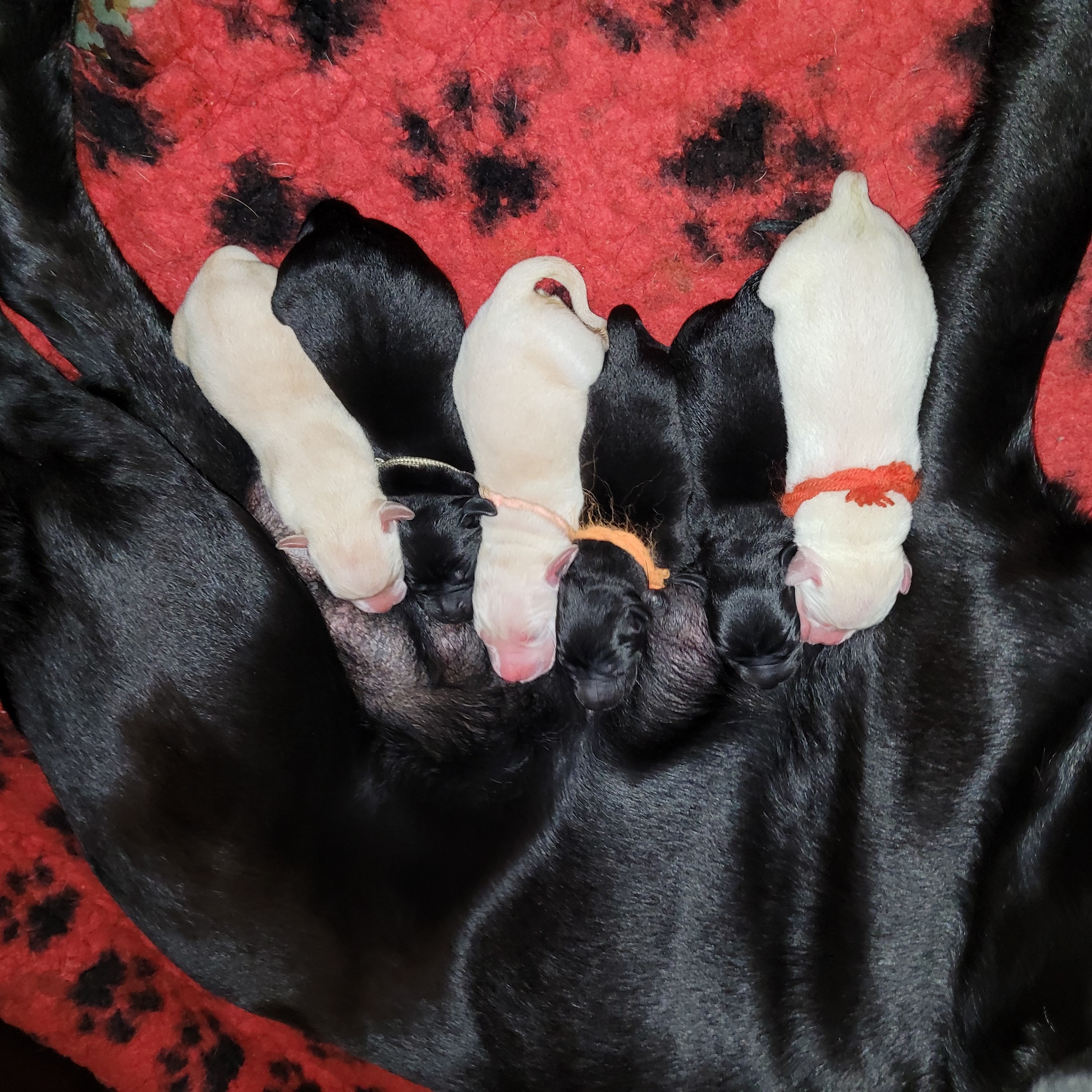 Nach ein wenig Schlaf und Zeit alles zu verarbeiten freuen wir uns nun über die Aufzucht von 3 gelben (1 Rüde/ 2 Hündinnen) und 3 schwarzen Hündinnen! 🥰