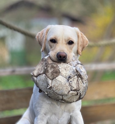 Eigentlich war Hildie gar nicht geplant und fest versprochen. Da die Familie aber schon einen Rüden aus unserer Zucht hat und ich ihnen freie Wahl versprochen hatte, schließlich muss der Zweithund ja passen, haben sie sich mit 7 Wochen für den ruhigeren Henry entschieden.